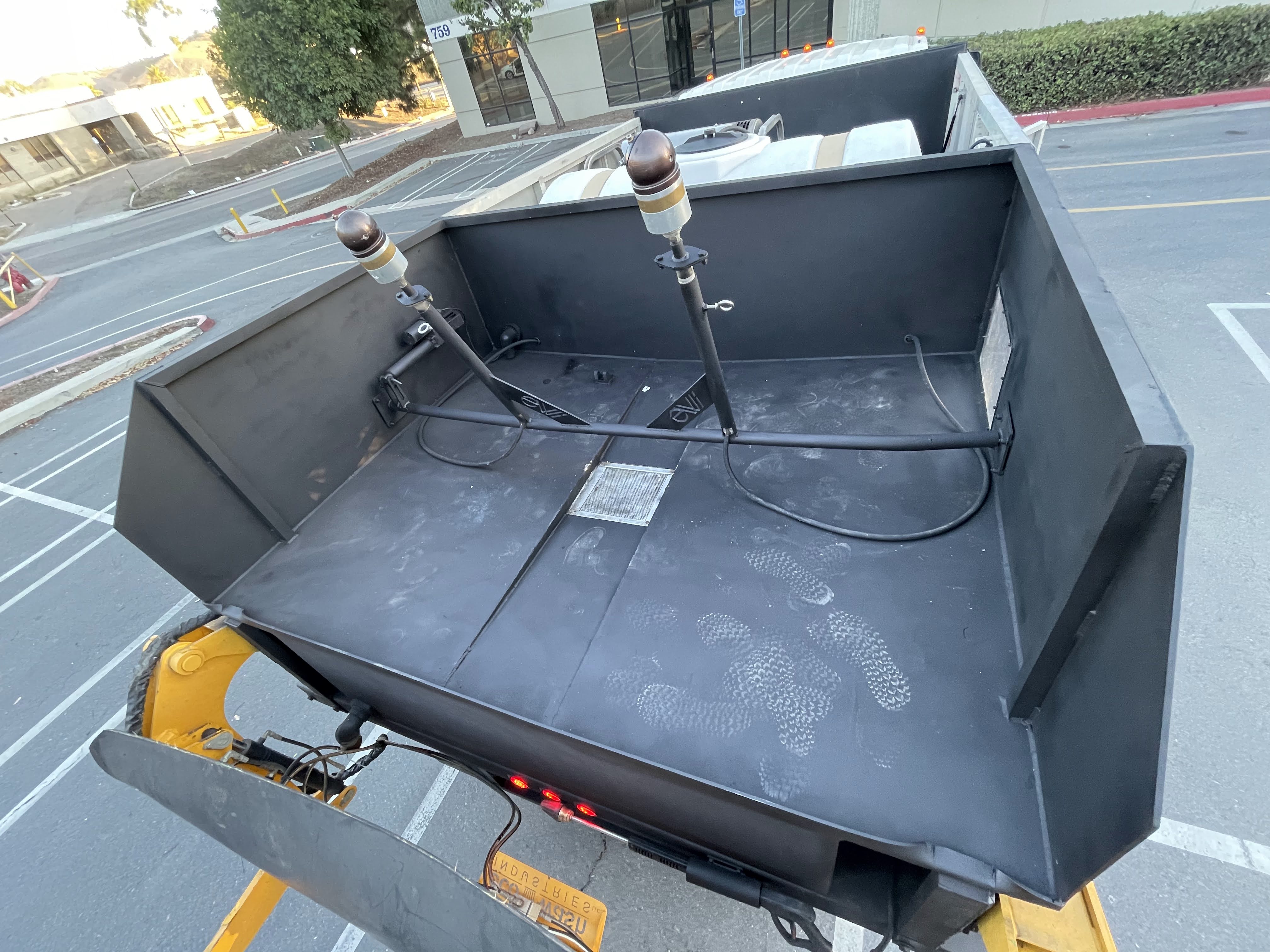 The truck has a 600-gallon fresh tank, auxiliary diesel tank feeds 2 burners. 2 pumps run off PTO at the same time.